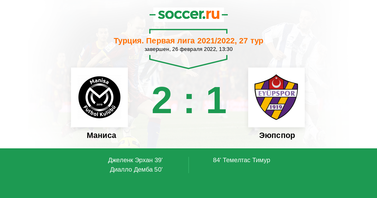 39' (1:0) Джеленк Эрхан (89) (Диалло Демба (30))