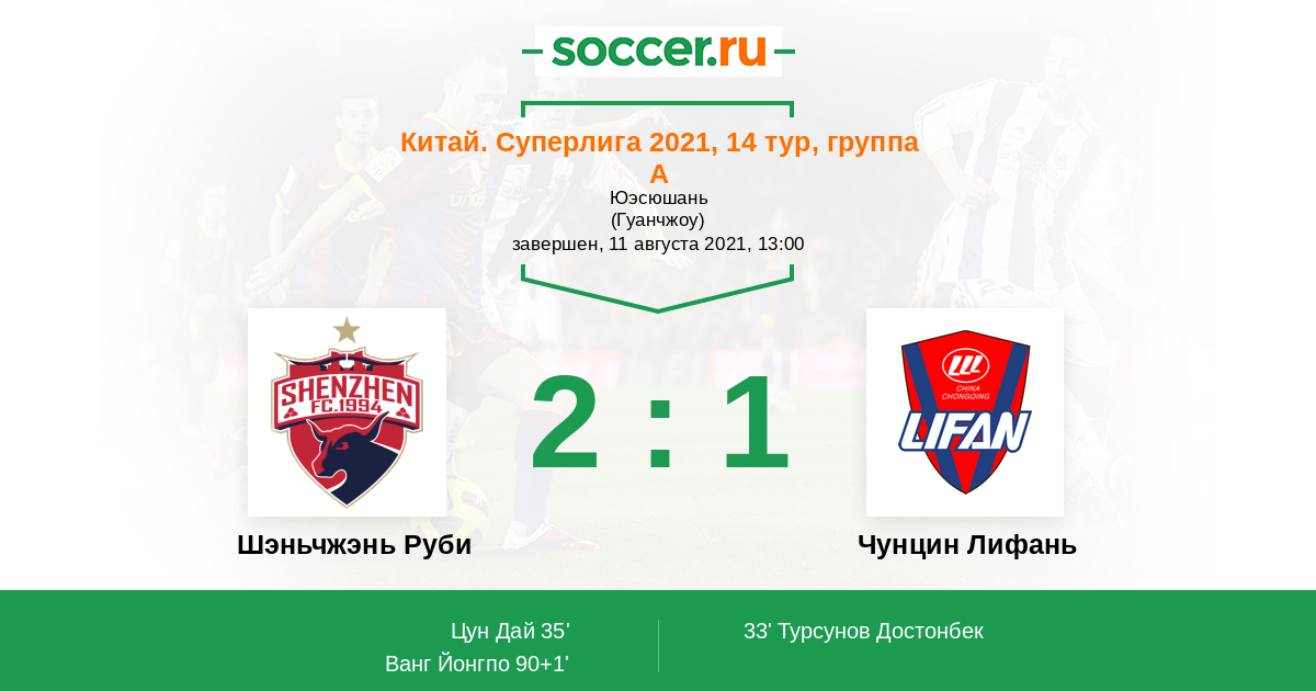 Запасные: 28 Ли Уаньи (с 46'), 21 Жипенг Цзян (с 70'), 39 Ванг Йонгпо (с 70'), 27 Кардек Алан (с 81'), 18 Чен Ксянгу, 30 Руйфень Хуан, 38 Сан Ке, 23 Го Вэй, 33 Чен Гуолианг, 6 Пей Шуай, 13 Чу Хаофень, 11 Юань Чжан