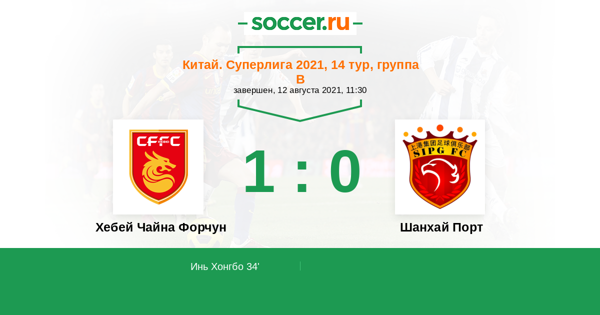 34' (1:0) Инь Хонгбо (13) (Леонардо (45))
