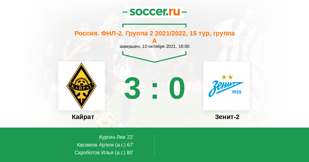 67' (2:0) Автогол Касимов Артем