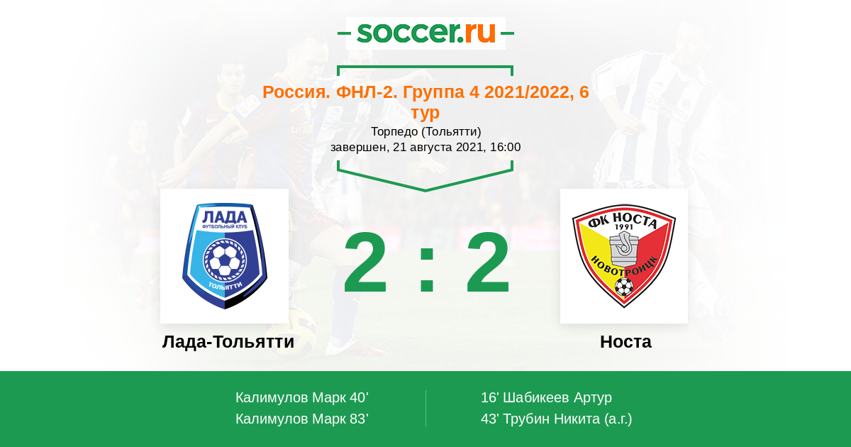 43' (1:2) Автогол Трубин Никита