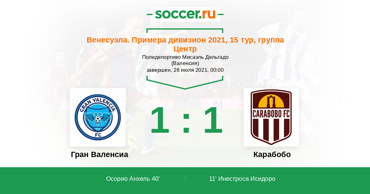 40' (1:1) Осорио Анхель (18)