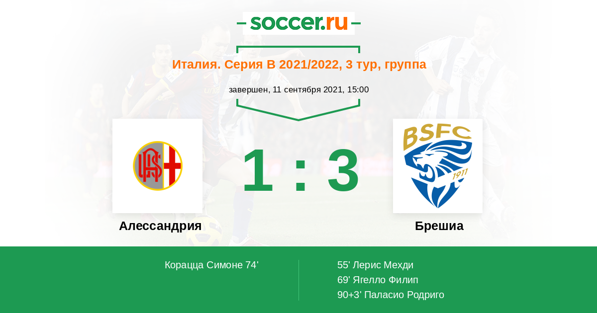 74' (1:2) Корацца Симоне (18)