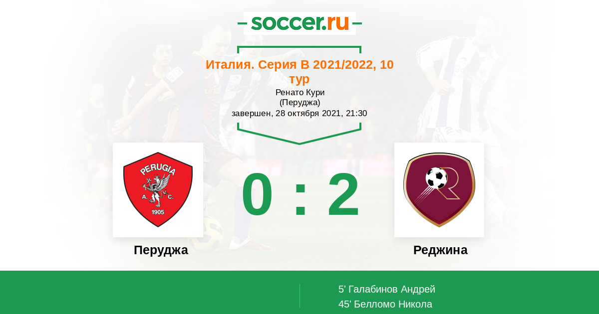 45' (0:2) Белломо Никола (10)