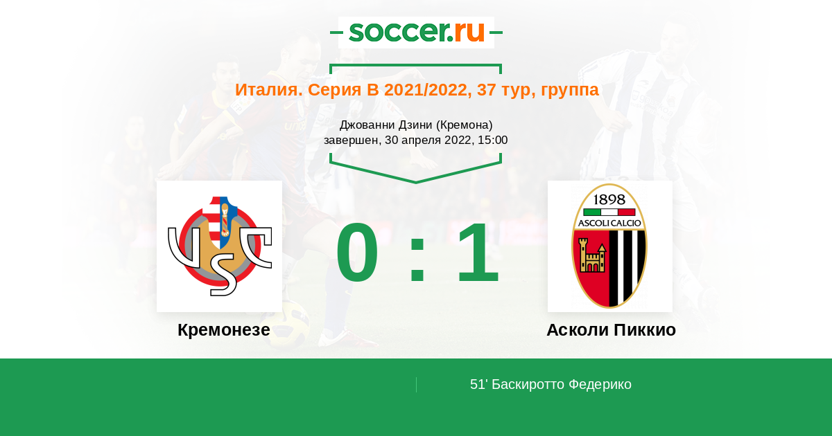 51' (0:1) Баскиротто Федерико (6) (Майстро Фабио (37))