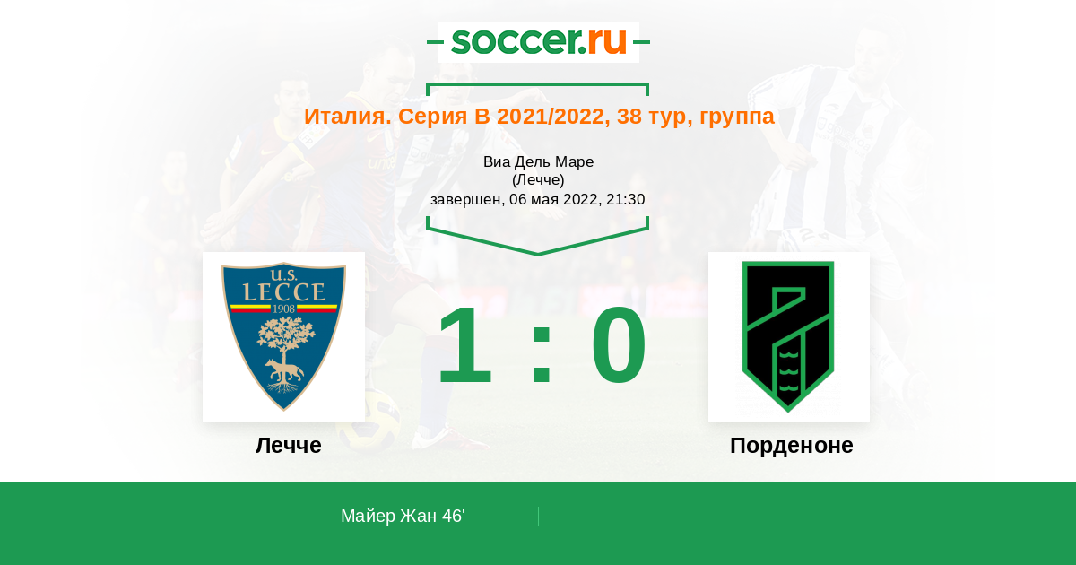 46' (1:0) Майер Жан (37) (Ди Мариано Франческо (10))