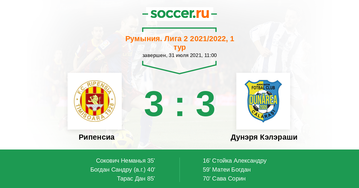 40' (2:1) Автогол Богдан Сандру