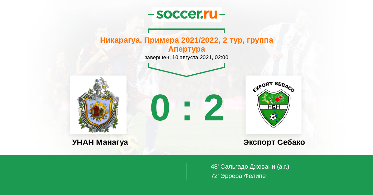 48' (0:1) Автогол Сальгадо Джовани