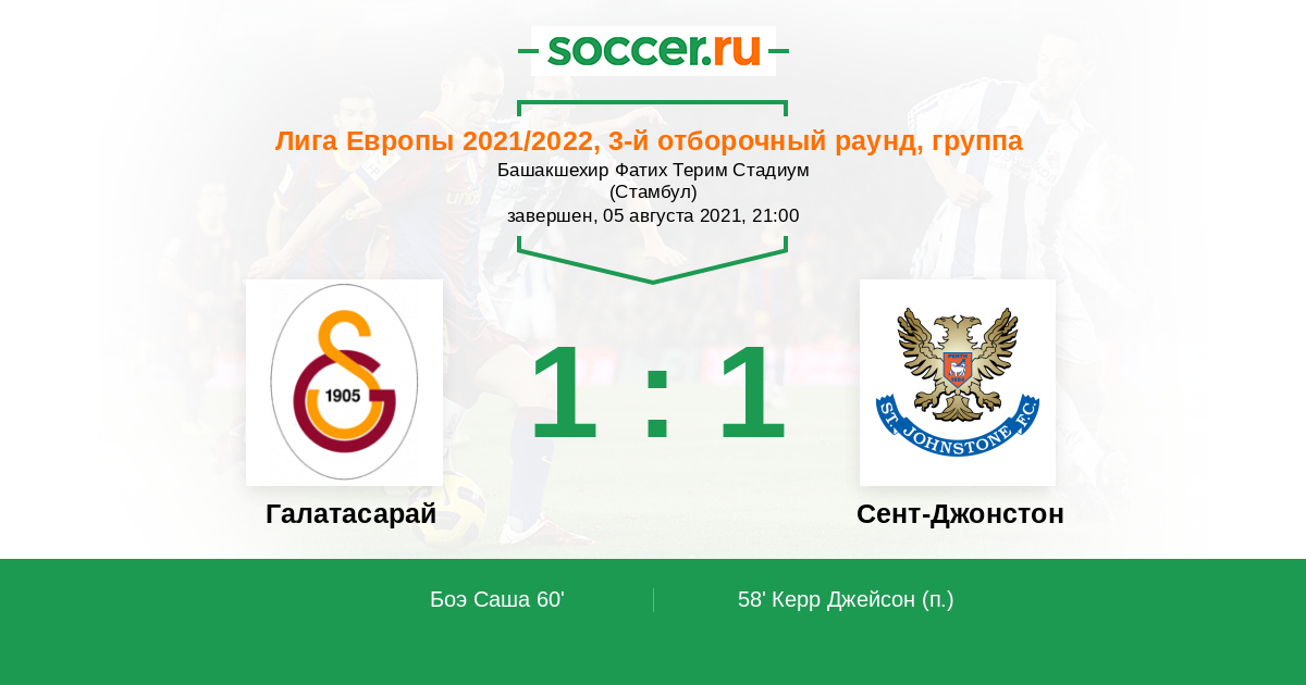 Подходят к этому матчу клубы по разному Сент Джонстон только начинает как тёмная лошадка посмотрим за последние пять игр они не проиграли ни одного 4 ничьи и 1 победа. Как обозленный Галатасарай после проигрыша в Лиге чемпионов ПСВ думаю в этом матче они спустя всю свою злость на шотландцев и возможно с разгромным счётом в этом матче они считаются фаворитом. Да если бы не проиграли в лиге чемпионов у них шла не плохая безпроигрышная серия аж с апреля. Но с этого матча будут наверстать.