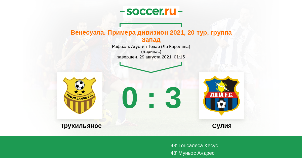 48' (0:2) Муньос Андрес (18)