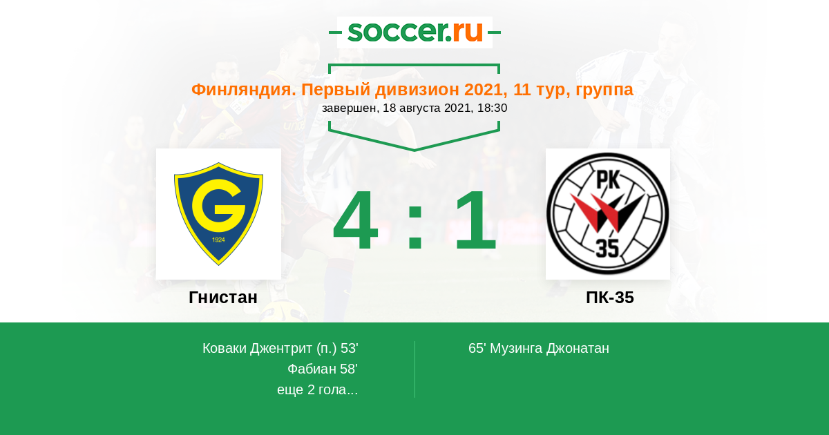 76' (3:1) Европеус Йоэль (14)