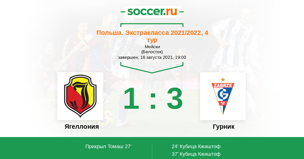 37' (1:2) Кубица Кжиштоф (6) (Янза Эрик (64))