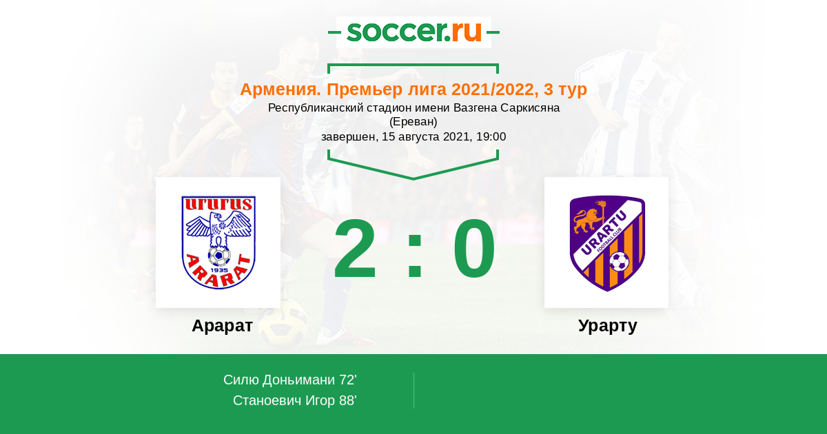 Запасные: Силю Доньимани (с 60'), Алию Исах (с 60'), Мкртчан Рудик (с 69'), Станоевич Игор (с 88'), Хакобян Роберт (с 88'), Симонян Арман, Назарян Ованнес, Айвазян Погос, Дарбинян Роберт, Магакян Юрий