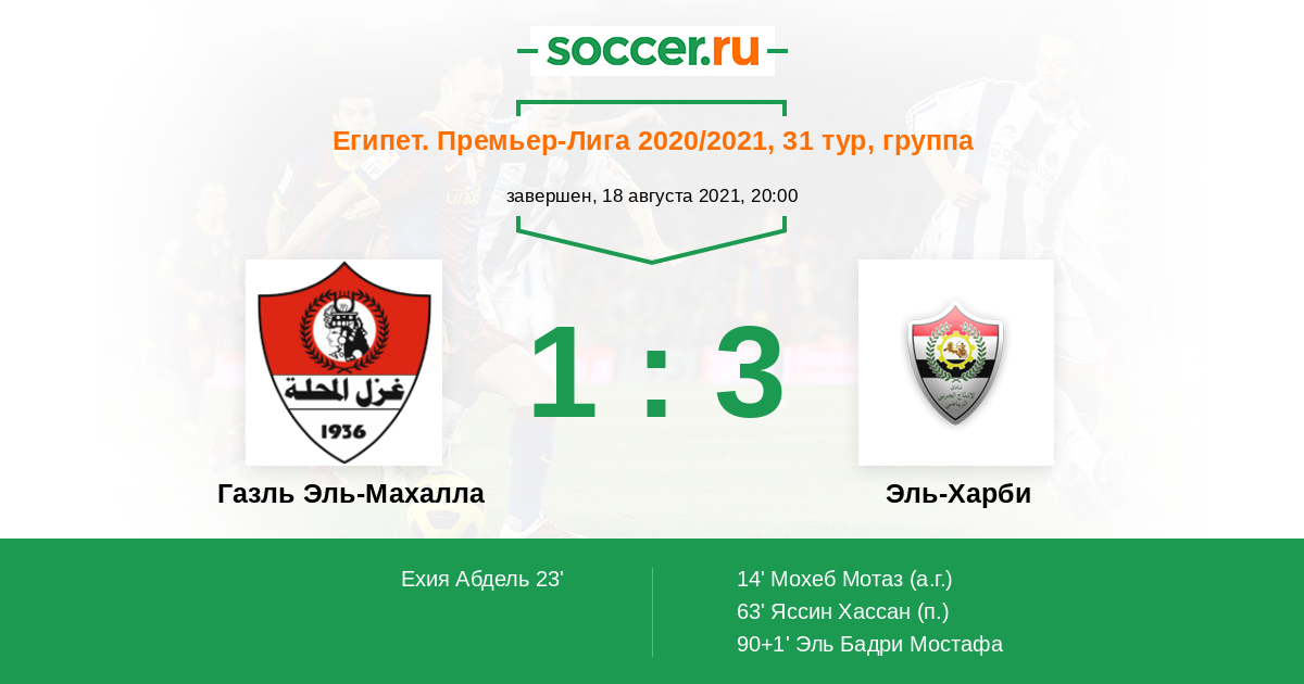 23' (1:1) Ехия Абдель (99) (Мохеб Мотаз (24))
