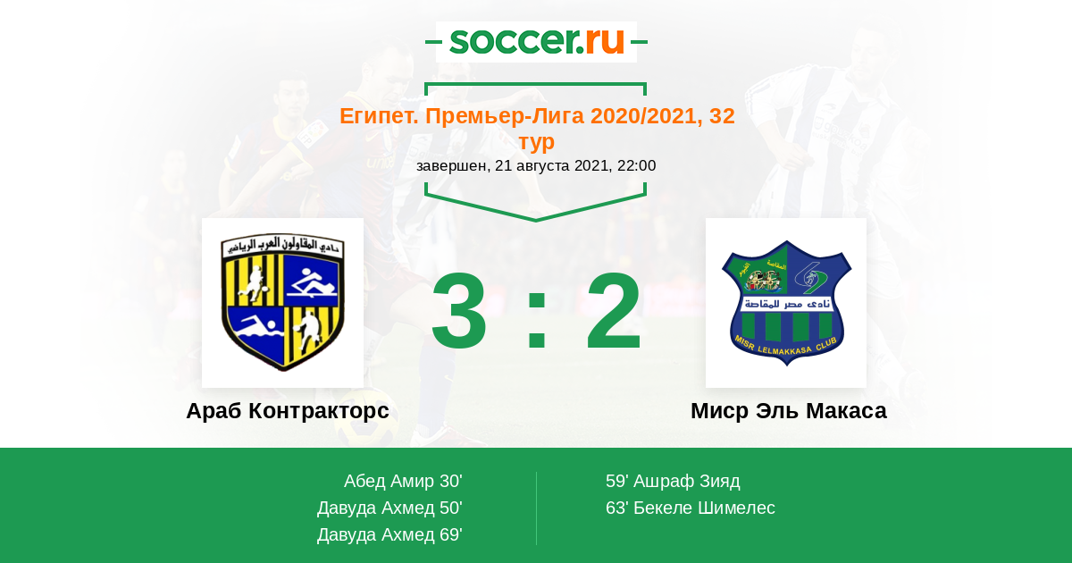 59' (2:1) Ашраф Зияд (32) (Мурси Бассин (9))