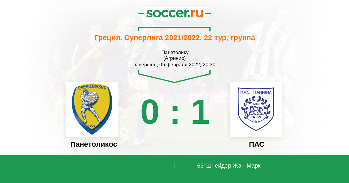 63' (0:1) Шнейдер Жан-Марк (17)