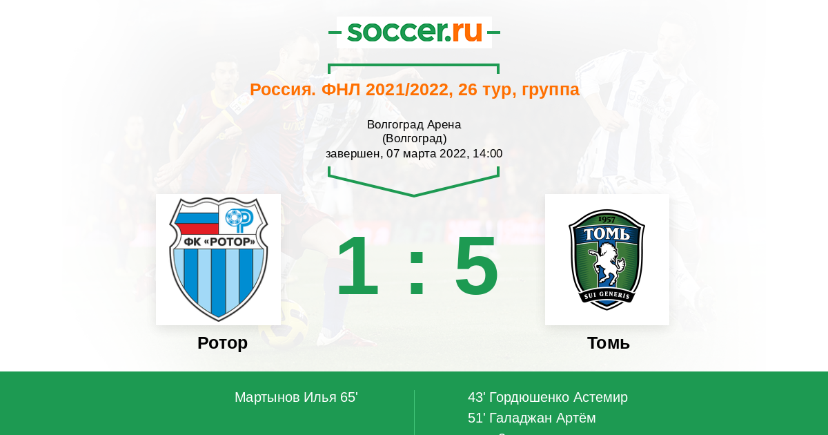 «Ротор» явно намерен покинуть опасный сектор в таблице уже в ближайшее время и будет очень мотивирован в предстоящей игре. Наставник волгоградцев четко обозначил цели на вторую часть сезона и коллектив постарается начать их выполнять уже в противостоянии с томичами, которые еще никогда не обыгрывали «Ротор» на его земле. Предполагаем, что фактор родного поля и верный настрой придадут хозяевам нужный импульс и они смогут расправиться с удобным противником, чем и предлагаем воспользоваться.