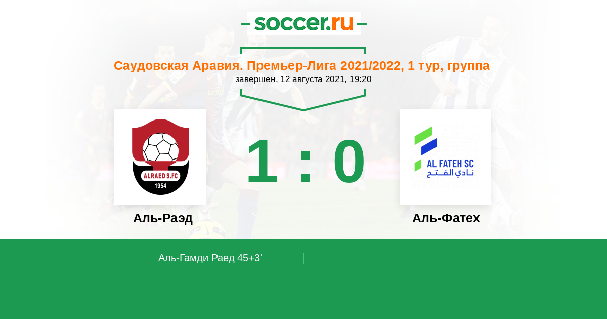 45+3' (1:0) Аль-Гамди Раед (9) (Альмогрен Абдулла (14))