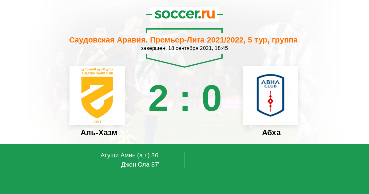 87' (2:0) Джон Ола (11) (Аль-Обаид Фахад (24))