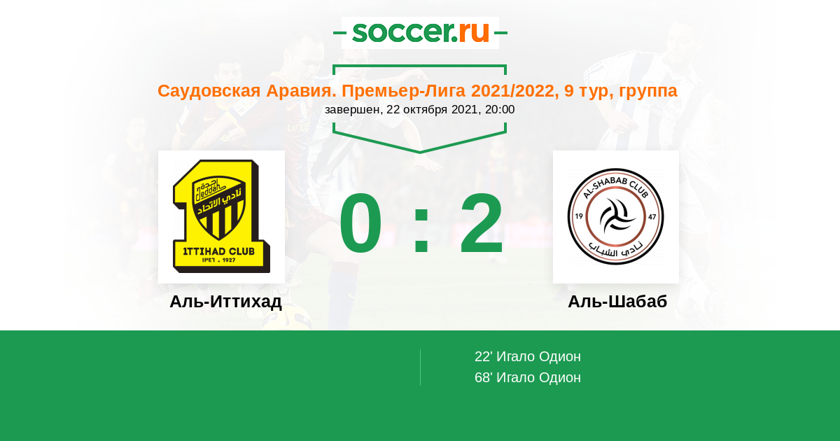 22' (0:1) Игало Одион (9) (Мотеб Аль-Харби (24))