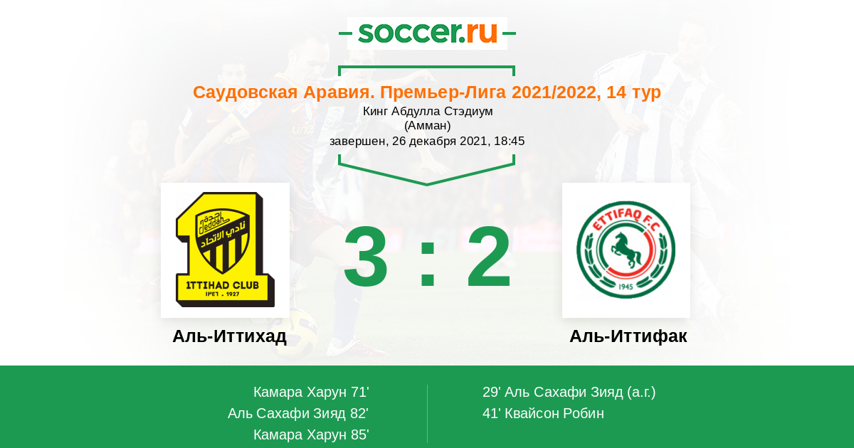 71' (1:2) Камара Харун (70) (Аль-Муваллад Фахад (8))