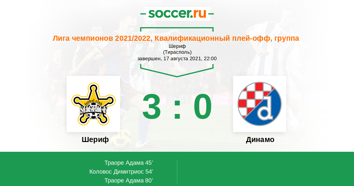 Не зря я всё таки посмотрел этот матч, правда только второй тайм и не очень не пожалел. Как я и думал что Шериф даст бой Динамо. Но такой игры и такого счёта я не ожидал. Если честно поставил на выигрыш Шерифа 2:1 . Даже не мог себе представить, что Динамо не сможет даже размачить счёт в игре. Шериф показал шикарный, контр атакующий футбол, очень хорошего качества и мог забивать ещё два три мяча . Правда и у Динамо были хорошие подходы , но как говорится счёт на табло. Поздравляю Шериф с историческим моментом в истории Молдавского футбол ,попаданием команды в групповой этап лиги чемпионов. Молодцы ребятушки, порадовали своей игрой всех болельщиков хорошего качественного футбола ⚽ !!! Пожелаем Шерифу ещё удивить красивой игрой в группе и победами в лиге чемпионов !!! Всем Добра !!!