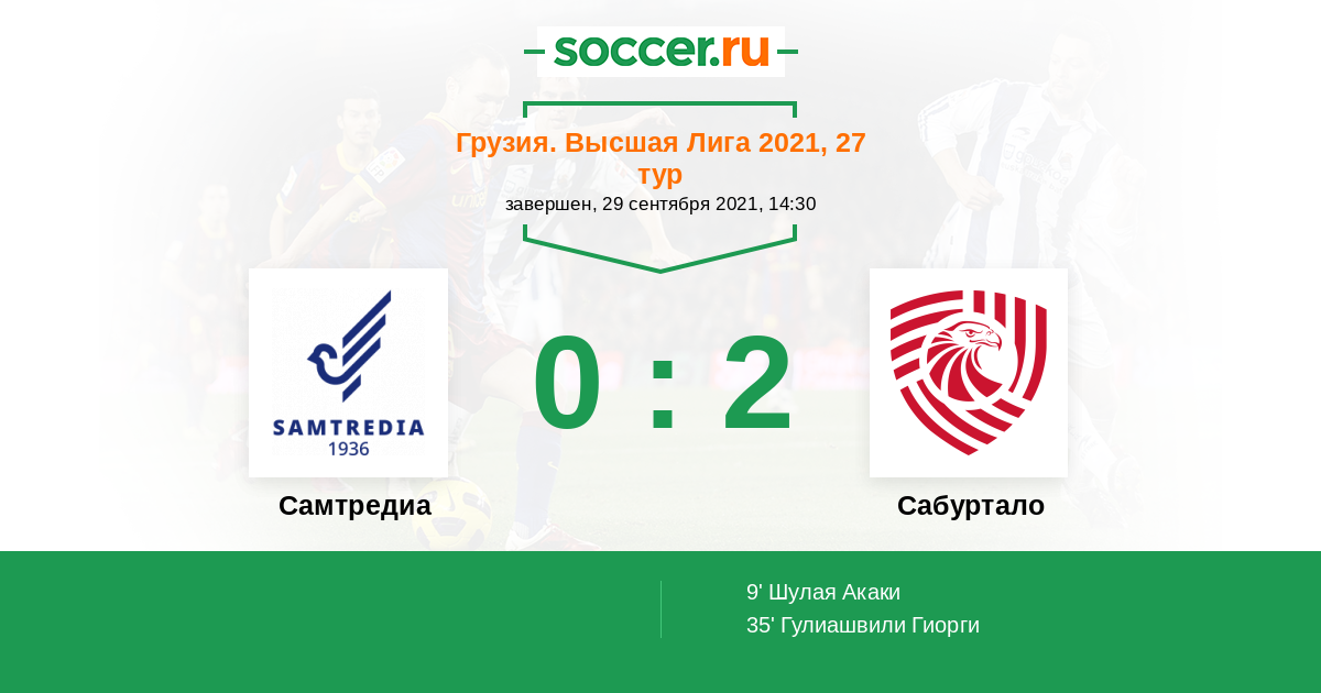 35' (0:2) Гулиашвили Гиорги (9)