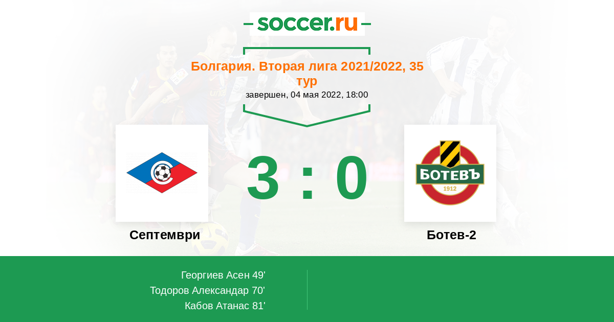 81' (3:0) Кабов Атанас