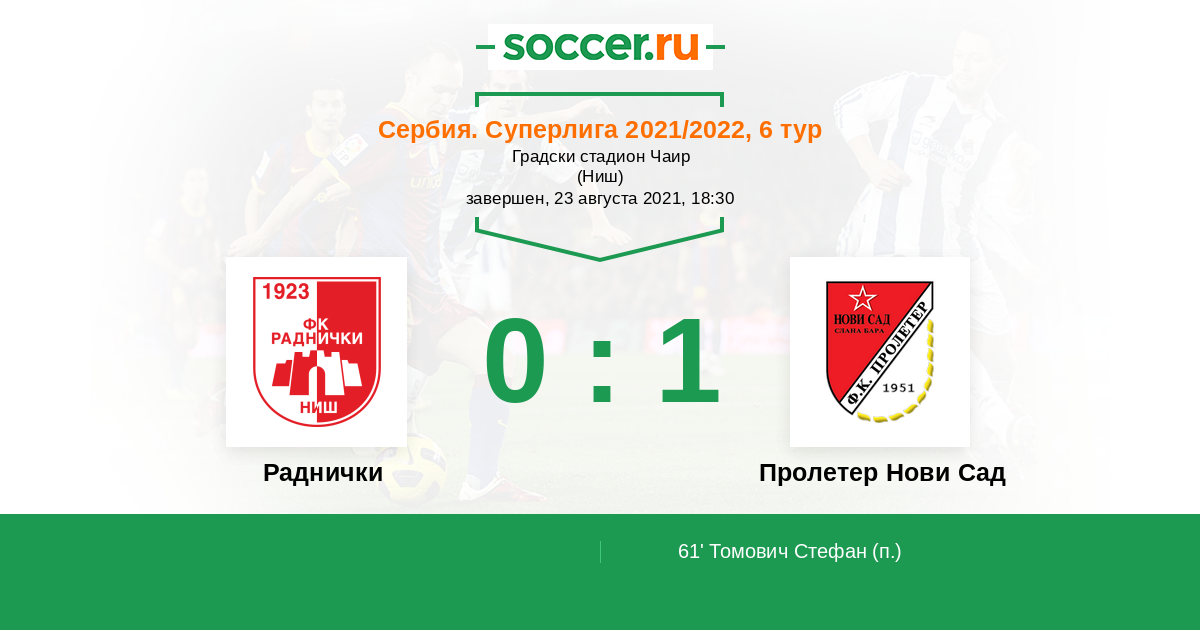61' (0:1) Томович Стефан (7)
