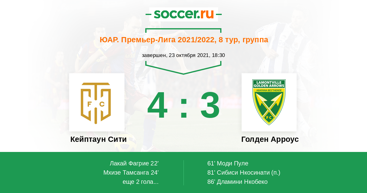 86' (4:3) Дламини Нкобеко (24) (Сабело Сифамандла (8))