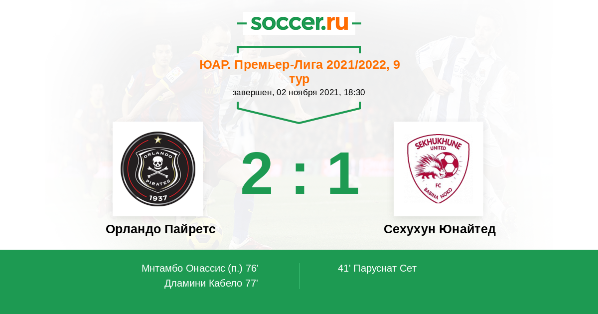 41' (0:1) Паруснат Сет (26) (Патжие Тшедисо (11))
