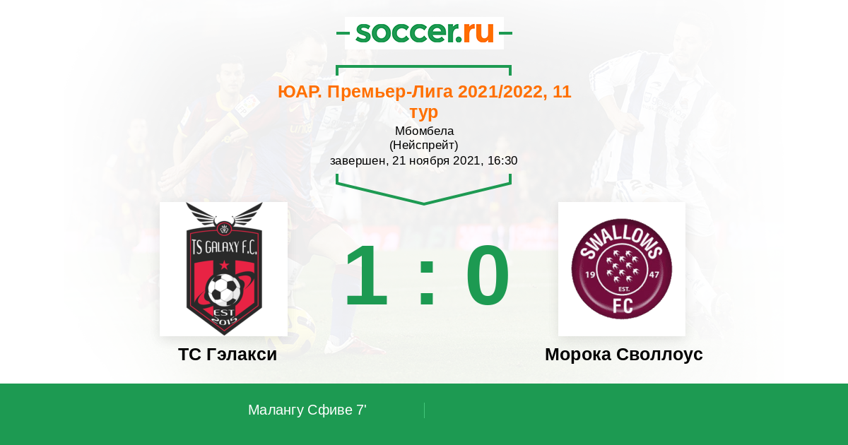 7' (1:0) Малангу Сфиве (27) (Ндули Сихле (8))