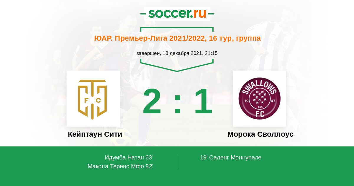 63' (1:1) Идумба Натан (4) (Мхизе Тамсанга (2))