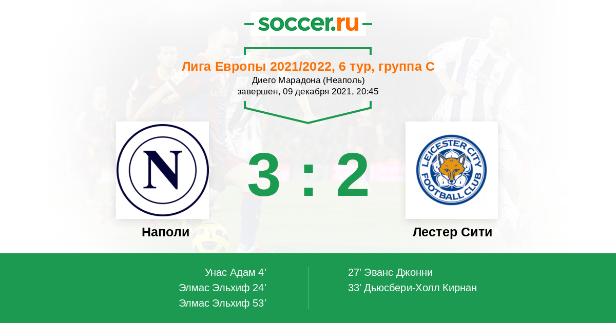 "Лестер" в похожей ситуации – две победы в пяти последних матчах, также минимум три забитых гола в каждом из них. В среднем "Лестер" забивает и пропускает 2 гола. Такая нестабильность не позволяет сделать выбор в пользу одной из команд. К тому же, "Лестеру" победа не нужна – ему хватит и ничьи. "Наполи" ничьей может не хватить для выхода в следующий раунд, а поэтому хозяевам необходимо побеждать. Но учитывая ряд потерь в составе, среди которых Кулибали, Осимхен и Манолас, "Наполи" попросту не хватит ресурса.