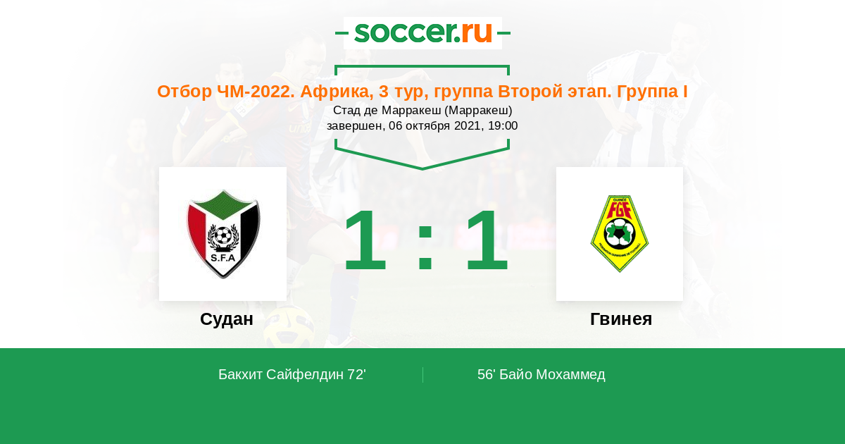 Суданцы уступили в первом туре Марокко (0:2), а затем не справились с Гвинея-Бисау (2:4), пропустив к концу первого тайма уже три гола.