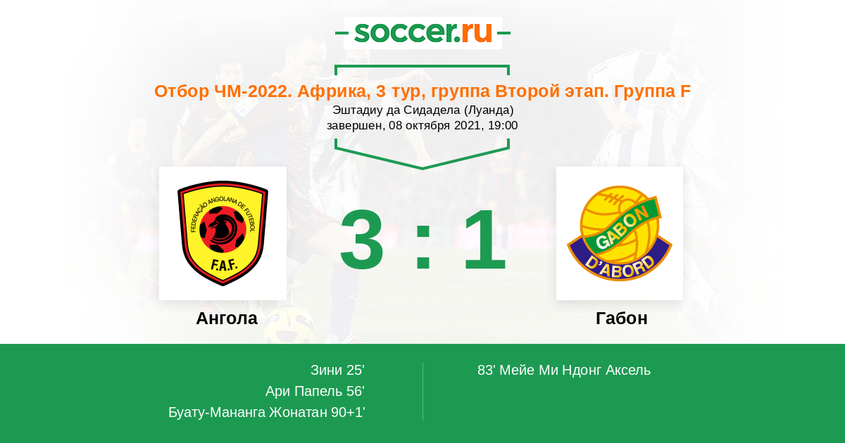 Запасные: Мейе Ми Ндонг Аксель (с 67'), Амека Луи (с 77'), Муссонда Алекс, Ойоно Овма Торке Энтони, Самбисса Давид, Мисси Мезу Гаэтан, Амономе Жан, Ассуму Акуэ Жуниор, Обисса Сидней