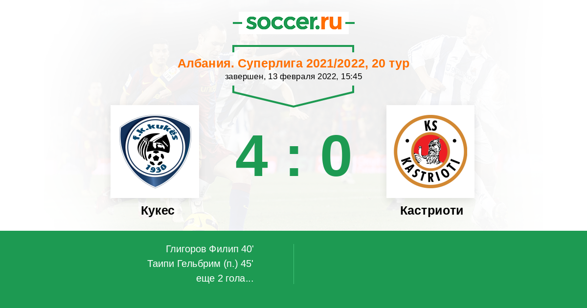 Запасные: Милунович Лука (с 63'), Крнич Алиджа (с 73'), Сула Эоген (с 86'), Бахтири Крешник (с 86'), Бутучи Алтын, Джика Дашамир, Коллари Фатион, Марку Кристи, Шкуртай Васил, Гавазай Зенель