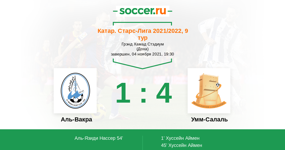 1' (0:1) Хуссейн Аймен (9) (Абденнур Аймен (23))