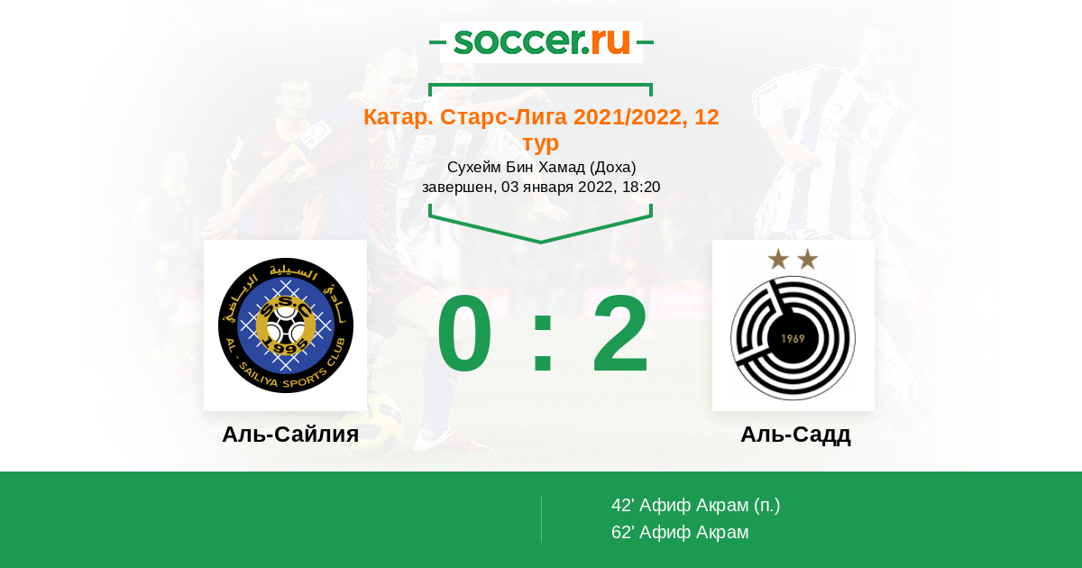 62' (0:2) Афиф Акрам (15) (Бунеджа Багдад (11))