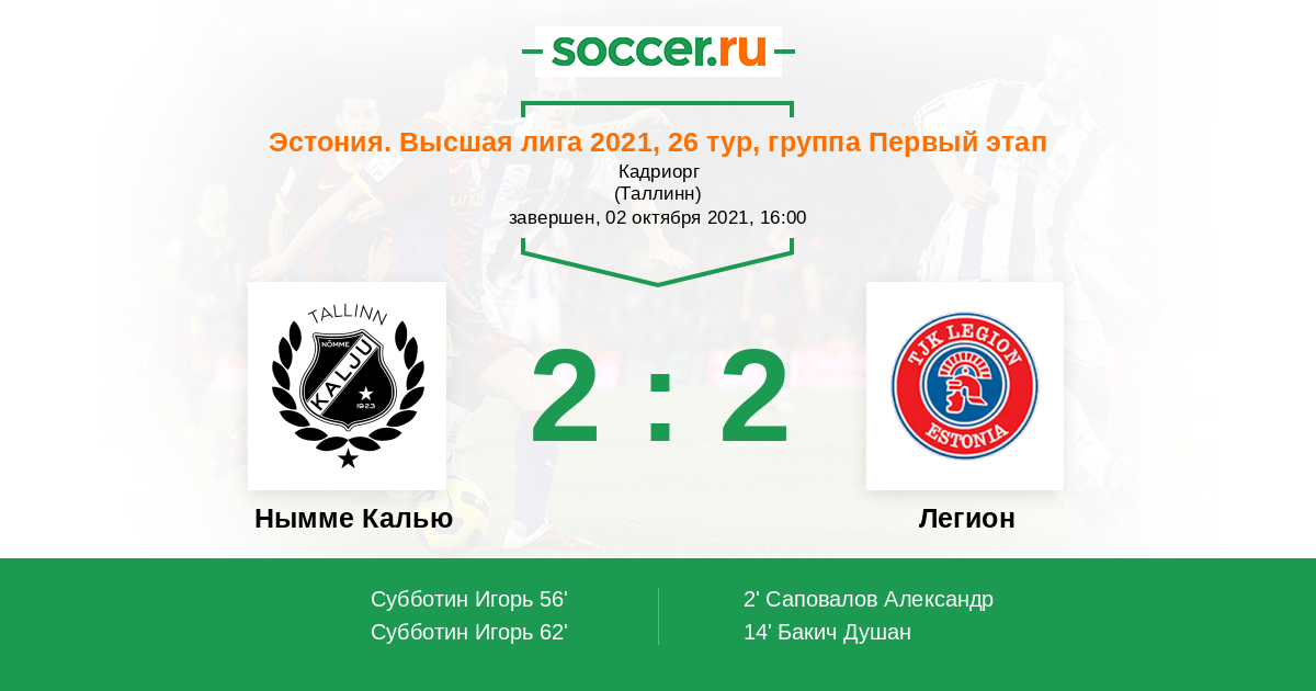 14' (0:2) Бакич Душан (74) (Айнсалу Михкел (47))