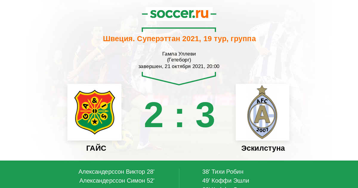 52' (2:2) Александерссон Симон (21) (Эгнелль Адам (10))