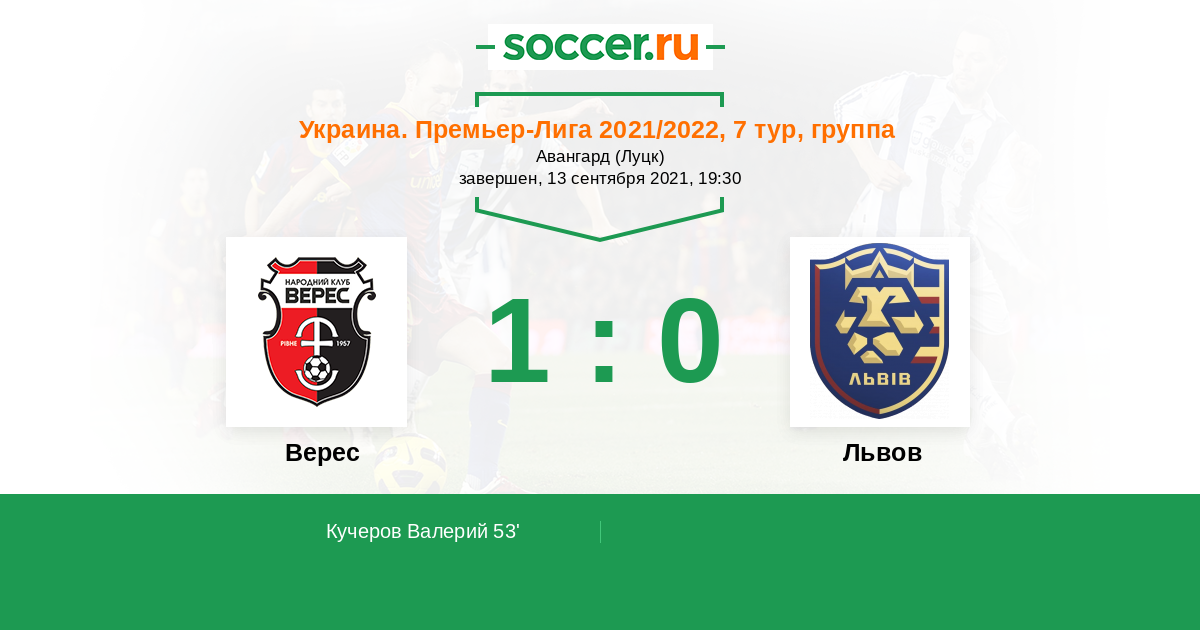 53' (1:0) Кучеров Валерий (29) (Пасич Евген (42))