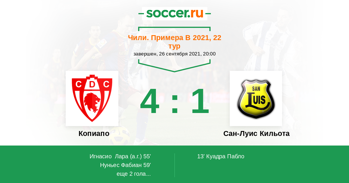 55' (1:1) Автогол Игнасио Лара