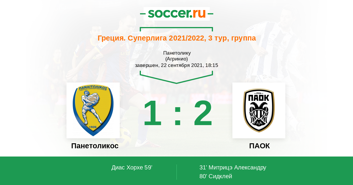 59' (1:1) Диас Хорхе (11) (Вергос Никос (9))