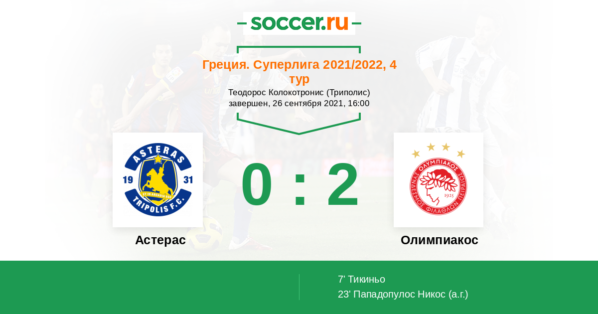7' (0:1) Тикиньо (29) (Масурас Гиоргос (19))