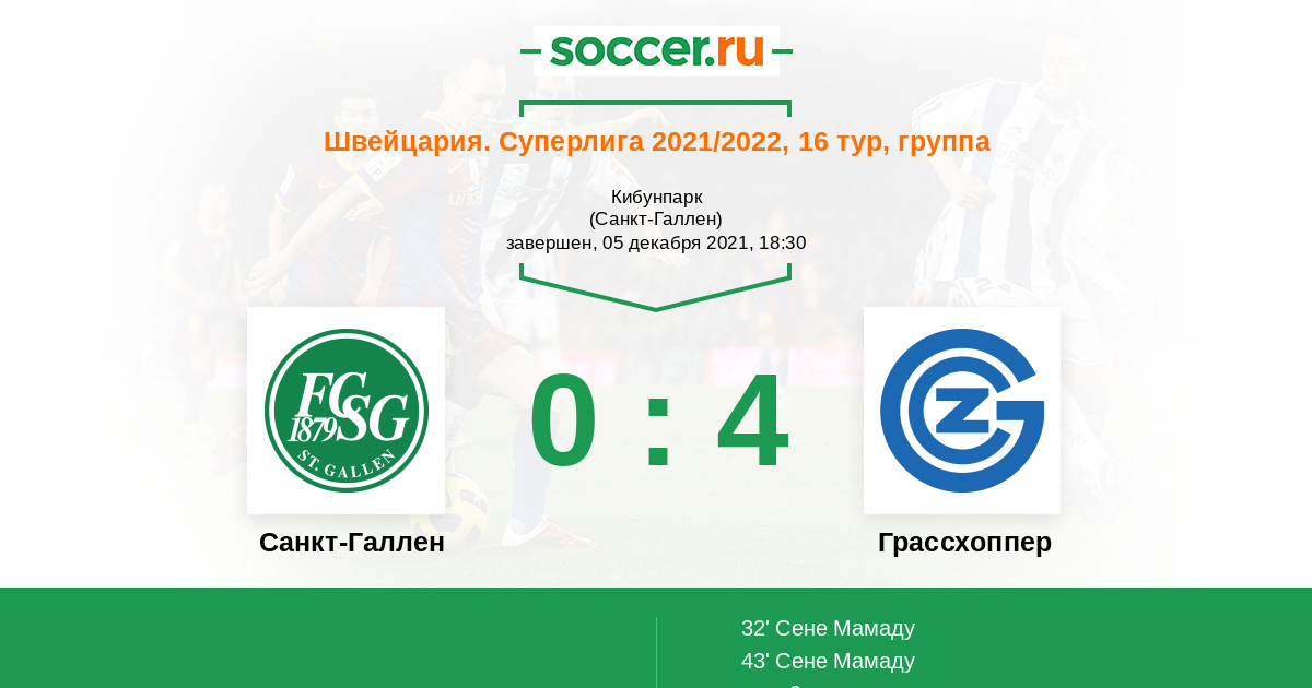 32' (0:1) Сене Мамаду (17) (Аригони Аллан (34))