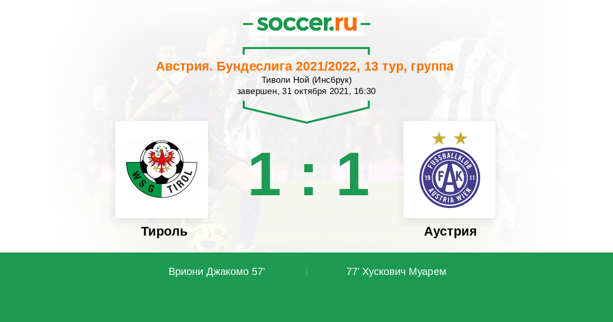 77' (1:1) Хускович Муарем (25) (Зуттнер Маркус (29))