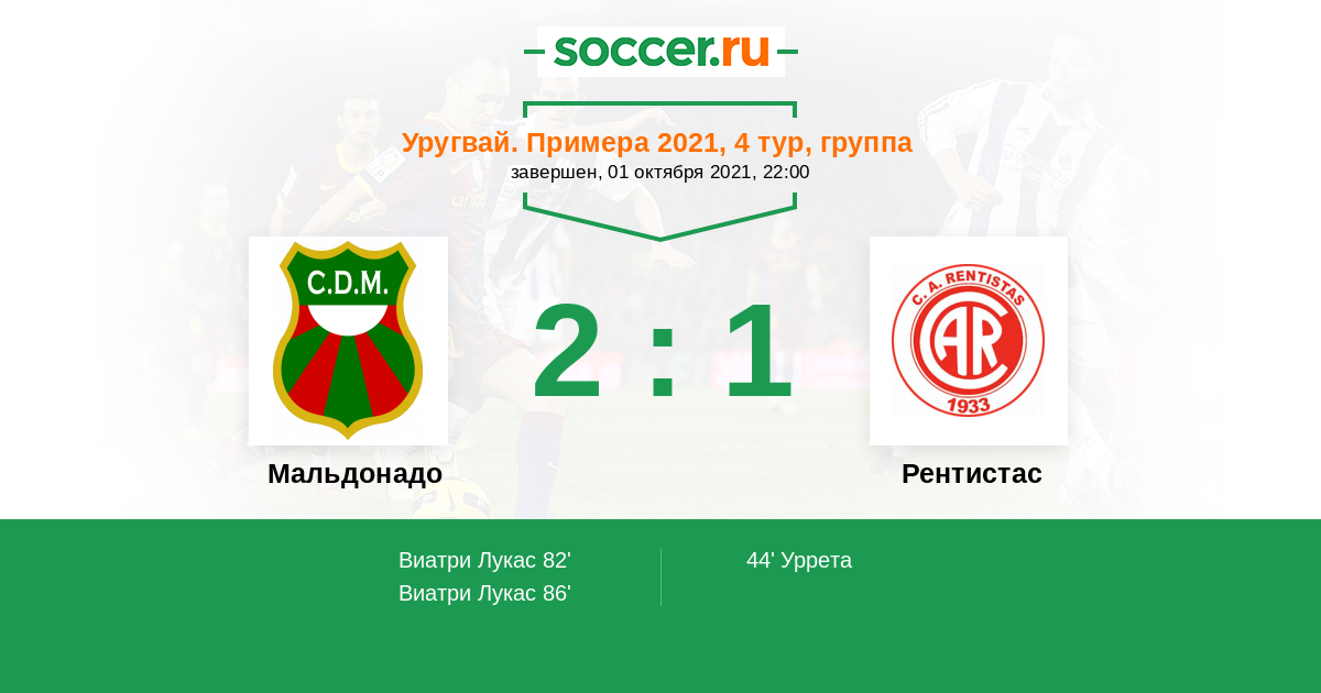 44' (0:1) Уррета (7)