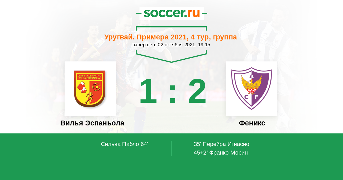 35' (0:1) Перейра Игнасио (9)