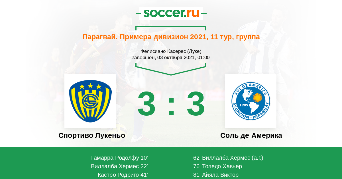 62' (3:1) Автогол Виллалба Хермес (23)